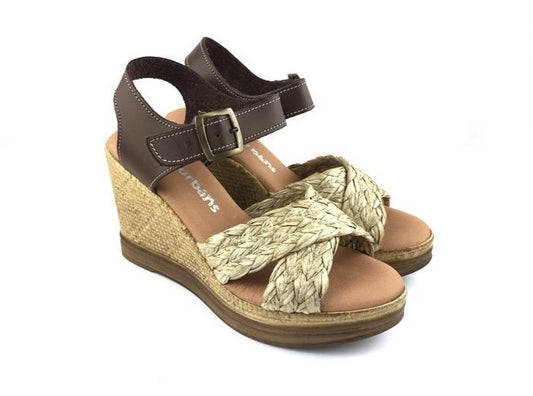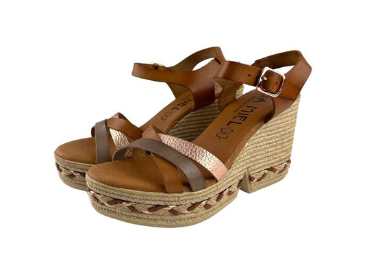 Issa Miel | Women's Hazelnut-Colored Esparto Wedge Leather Sandals Bilna