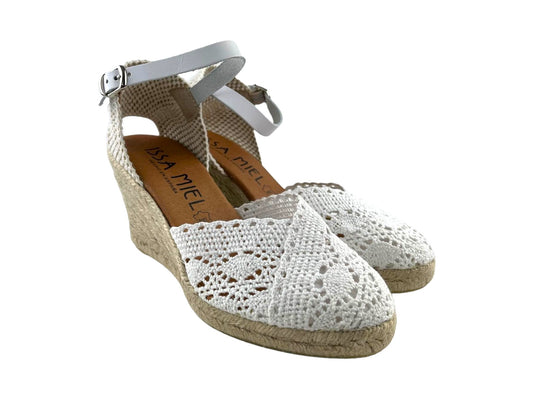Issa Miel | Women's white crochet wedge espadrilles (esparteñas) Lena