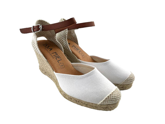 Issa Miel | Women's high-wedge espadrilles in white canvas, Laura