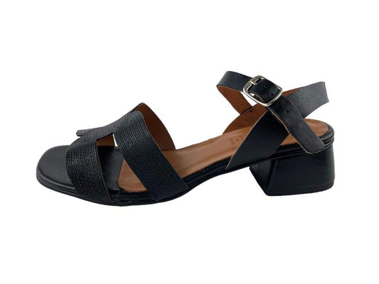 CLKS | Lisa Black Geometric Low Heel Buckle Sandals