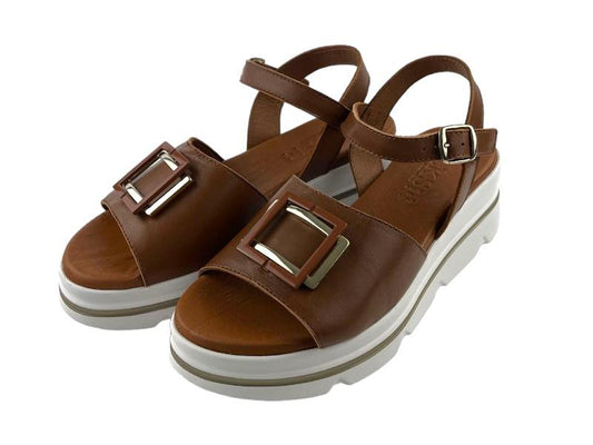 CLKS | Women's Hazelnut-Colored Ergonomic Leather Platform Sandals with Buckles