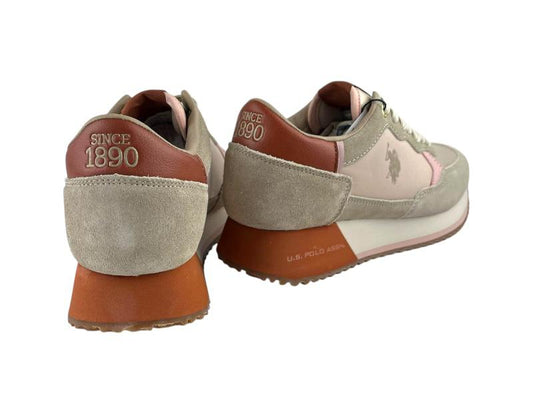US Polo Assn. | Women's lace-up sneakers in faux leather and beige nylon Paris