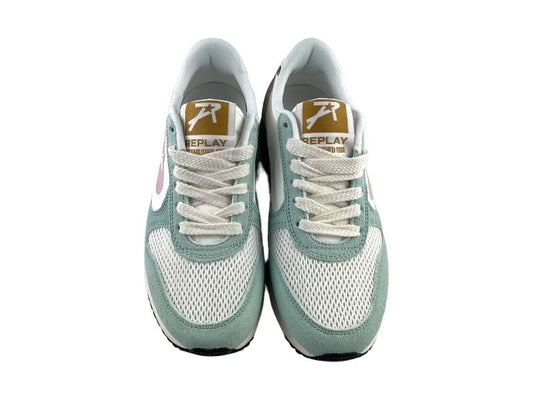 Replay | Women's Lace-Up Sneakers with Removable Insole, White and Green Fiber