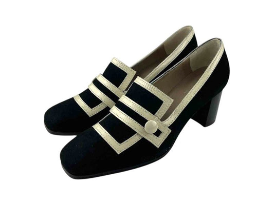 Plumers | Zapatos mujer piel ante negra de tacón retro estilo vintage años 60 Lucerna